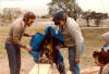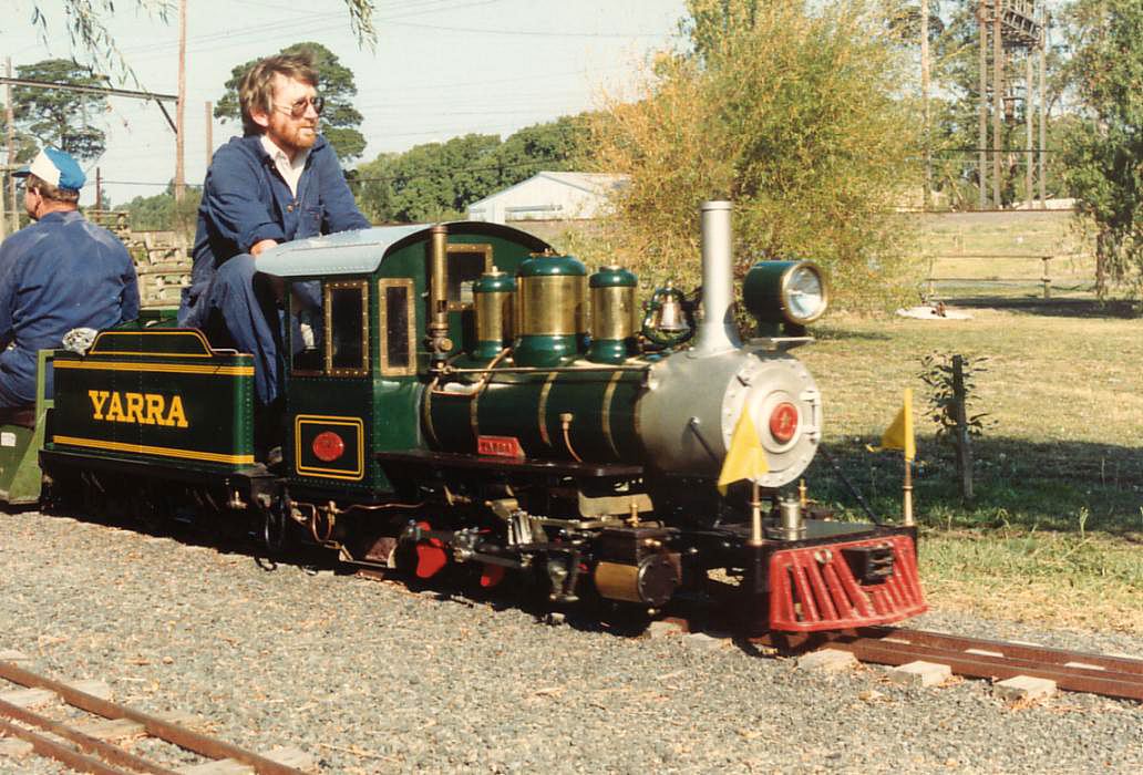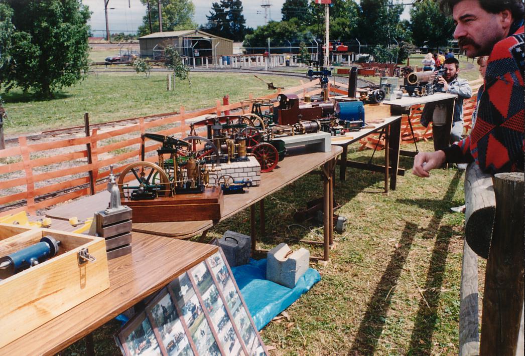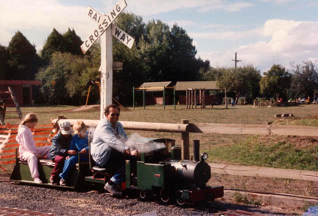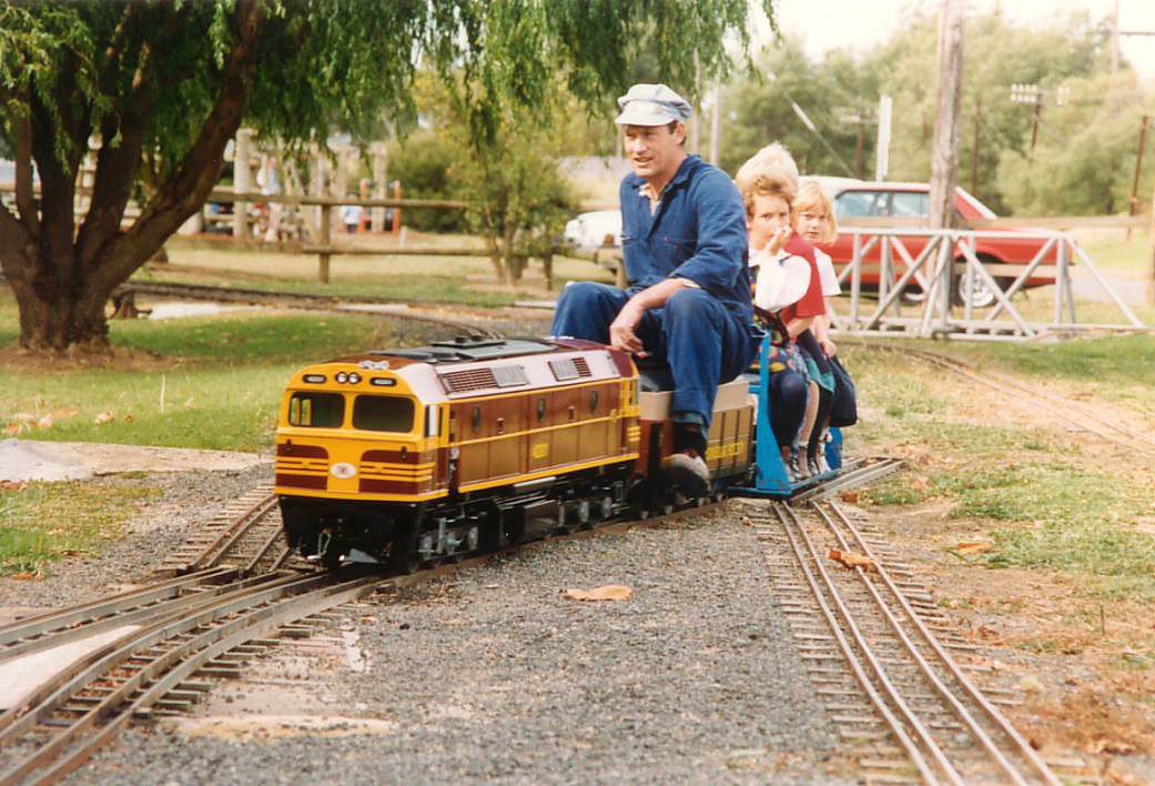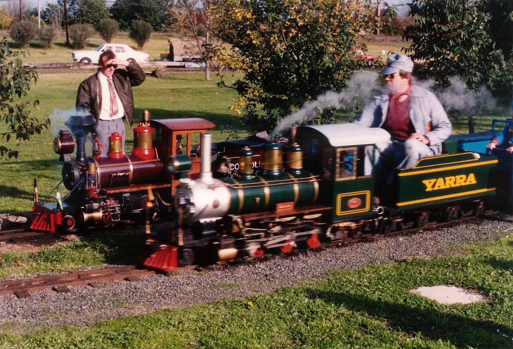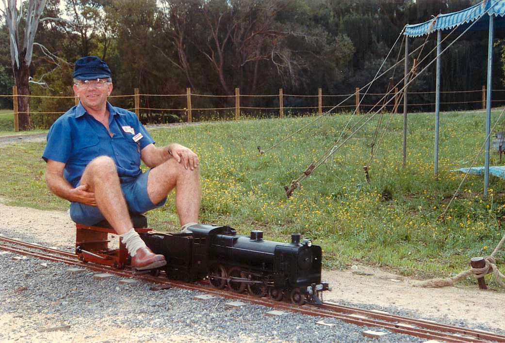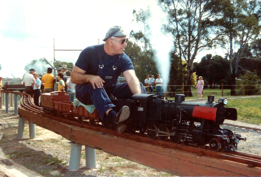 Albert and "Sweet Pea" on 5" gauge (foreground), Peter and "Tich" also on 5" gauge and Eric with "Maisie" on 3½" gauge (but with 7¼" gauge Royal Scot tender).