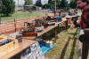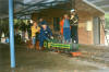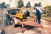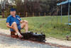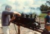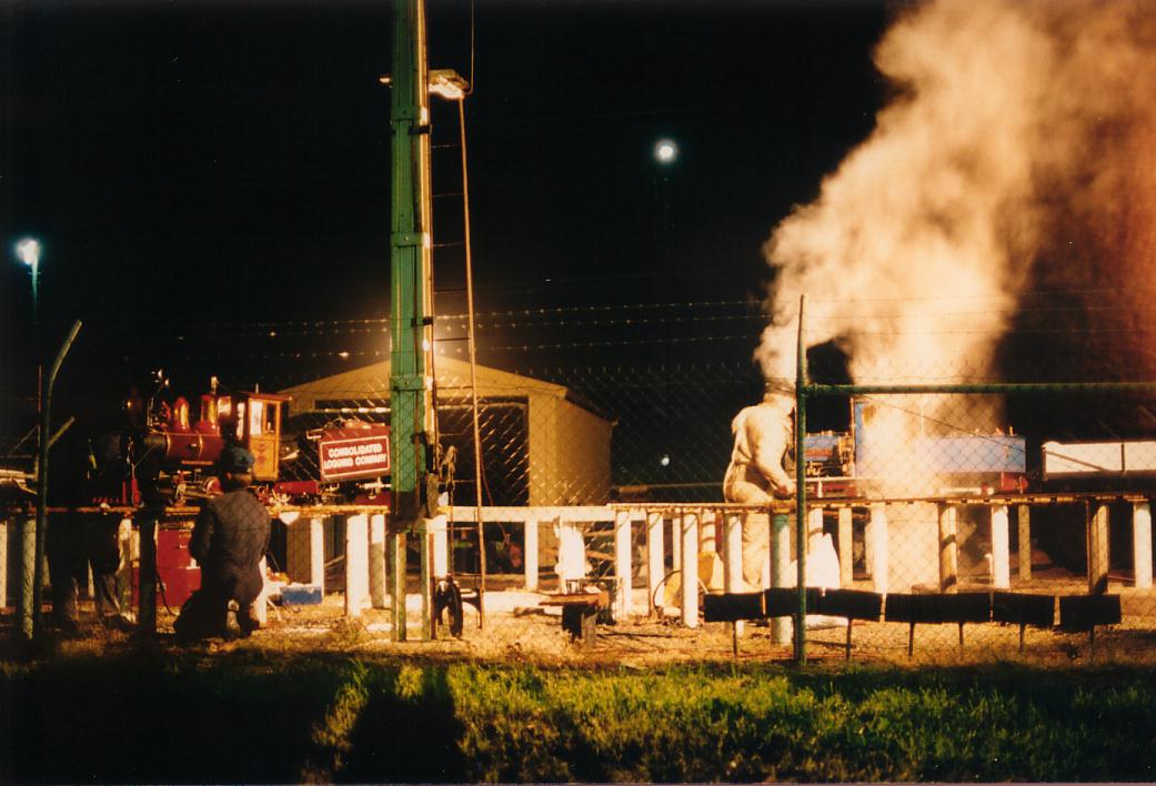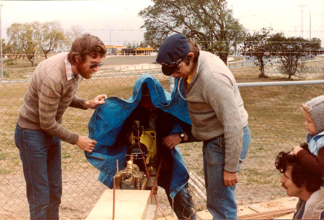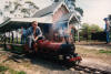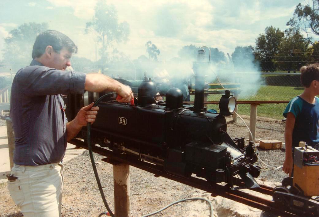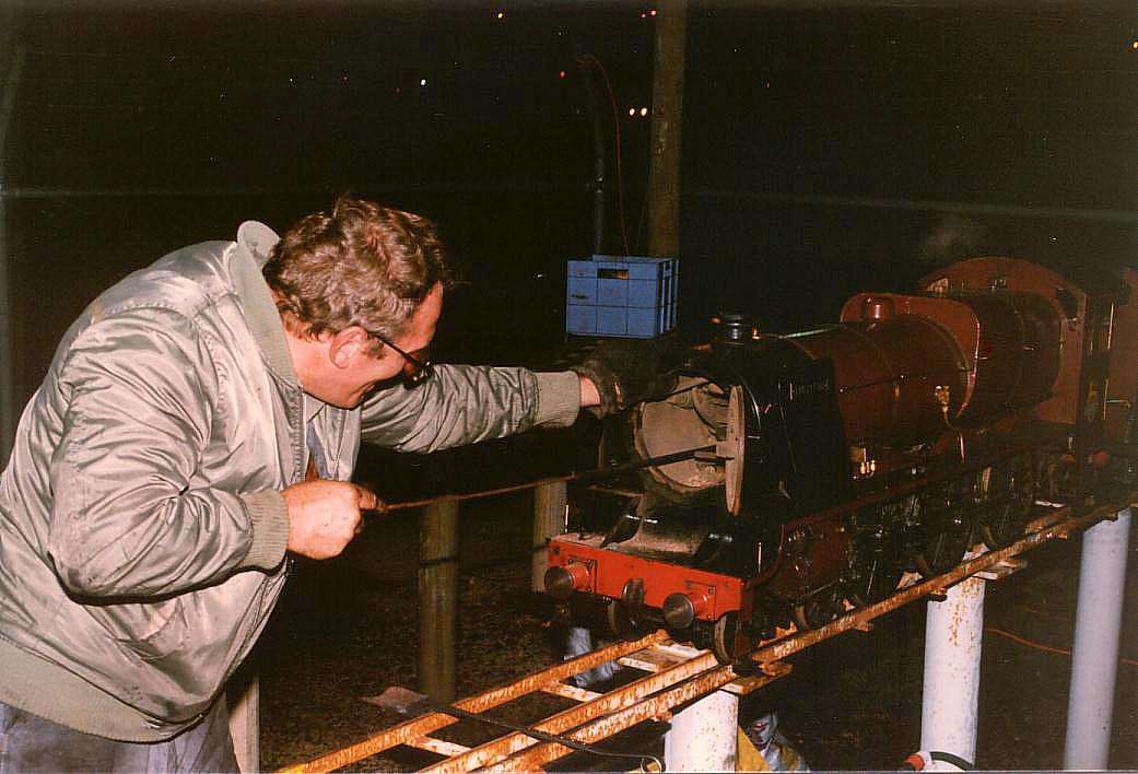 Measures taken to assist a 3½" gauge loco raise steam. Yes, there is a person under there as well.